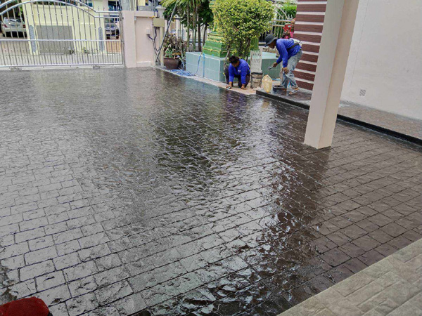 พิมพ์ลายบนพื้นทางเดินรอบบ้าน